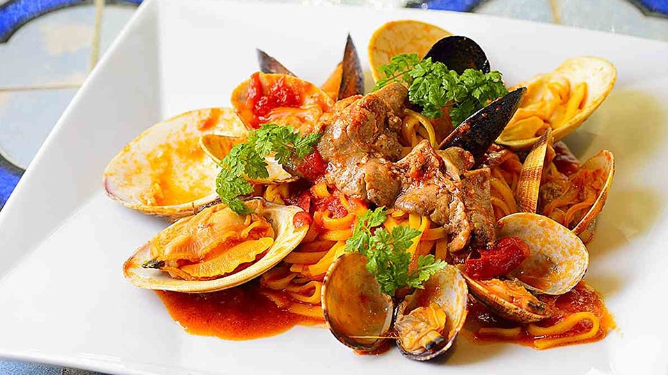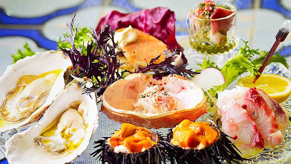 テーマは「Ocean to table」。直接現地に足を運び探した日本各地の新鮮な魚介を、寿司屋の息子でもあるオーナーシェフ古田崇ならではの斬新なアレンジを加えて提供致します。愛媛の宇和島や長崎の五島列島などから直送された海鮮は、活き活きとした生命力をダイレクトに感じられる"ジャパン・クオリティ"を誇るものばかり。そんな旬の味覚を様々な調理法で鮮やかに仕上げた盛り合わせ「オーシャンプレート」は、ぜひ試していただきたい名物。