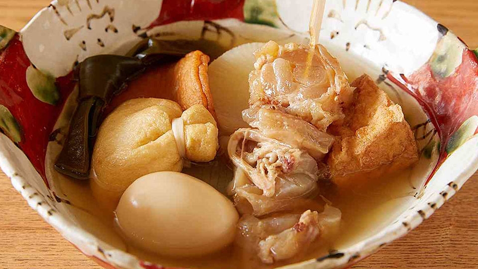 店の主役はおでんとうどん。和食の名店で修業を積んだ料理長が作り上げる味は、素材の味が活きた滋味深いおいしさ。おでんは香川県伊吹島のイリコと北海道南茅部の昆布で取るすっきりとした出汁が決め手。9時間トロトロになるまで煮込む牛すじをはじめ、こだわりの具材も多彩です。一方、うどんは讃岐うどんの製法をベースに、独自の配合でコシを生む。和風、洋風、中華風など30種ほどの創作うどんは、どれも他では味わえないものばかりです。日本各地から選りすぐった30種以上の日本酒とともに、じっくりと味わいたい。