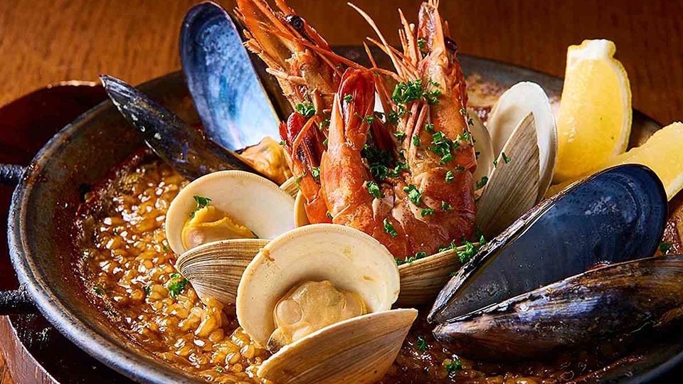 「ジローさんの店」。そんな個人が営む温かみ溢れる店をテーマにしたスペインバル。ここでは種類豊富なタパスやアヒージョ、パエリアなどスペイン定番の味に加え、日本の海鮮を使ったメニューなど季節感のあるバルメニューを黒板に展開しており、いつ来店しても旬を感じさせるメニューをご用意しています。また一番人気のパエリアは、伊勢海老やワタリガニなど贅沢な食材から採ったダシを、毎日継ぎ足しながらオリジナルの味に仕上げているのがポイント。スペイン産カヴァ、ビール、ワインとともにお気軽にお楽しみください。