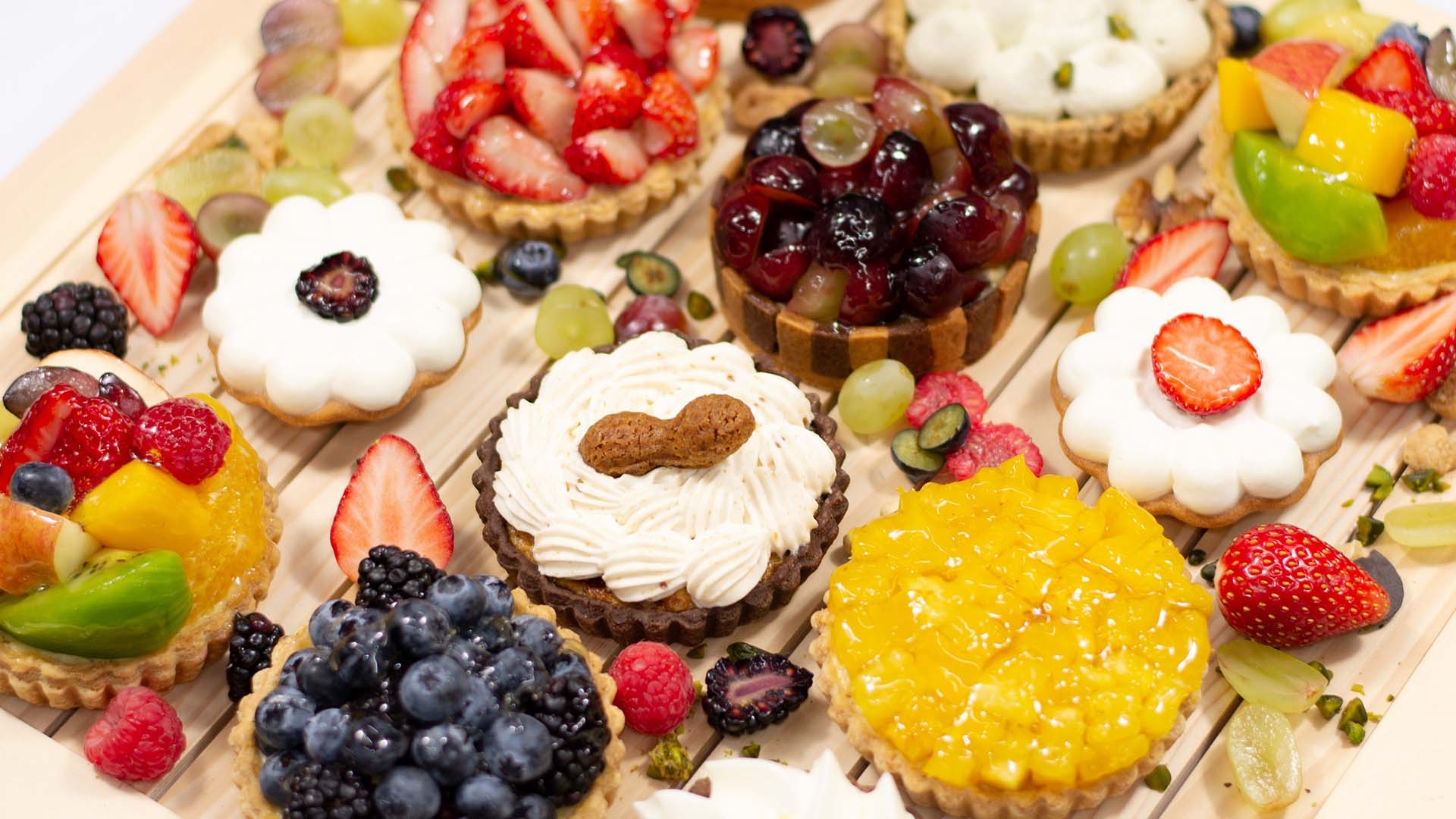 店名はフランスの子どもの数え歌「AM STRAM GRAM どれにしようかな? PIC 決~めた!」から。弾む気持ちでお選びいただけるよう、旬のフルーツを使用したタルトや季節限定の商品、塩っぱい系の商品など、心を込めてお作りいたします。味わいに変化をもたせたり、タルト生地に食感を加えたりするなど、最後の余韻までおいしく召し上がっていただけるよう、タルトをデザインしています。