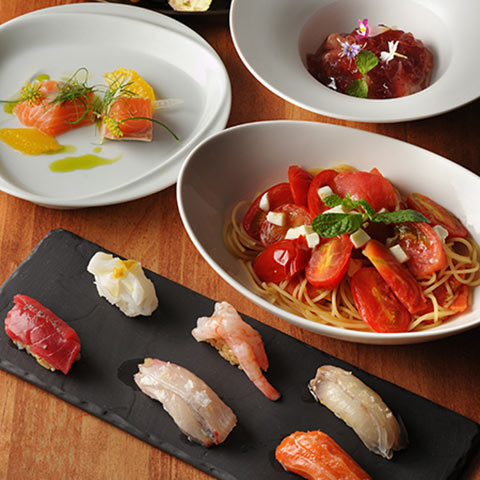 幅4mの大きなワインセラーには世界10カ国以上、150~200種類のワインを完備。ここで購入したボトルワインは、各お店さんに持ち込んで飲むことができます。今宵の肴に合う1本を選び、ここでしか味わえないペアリングをお楽しみください。